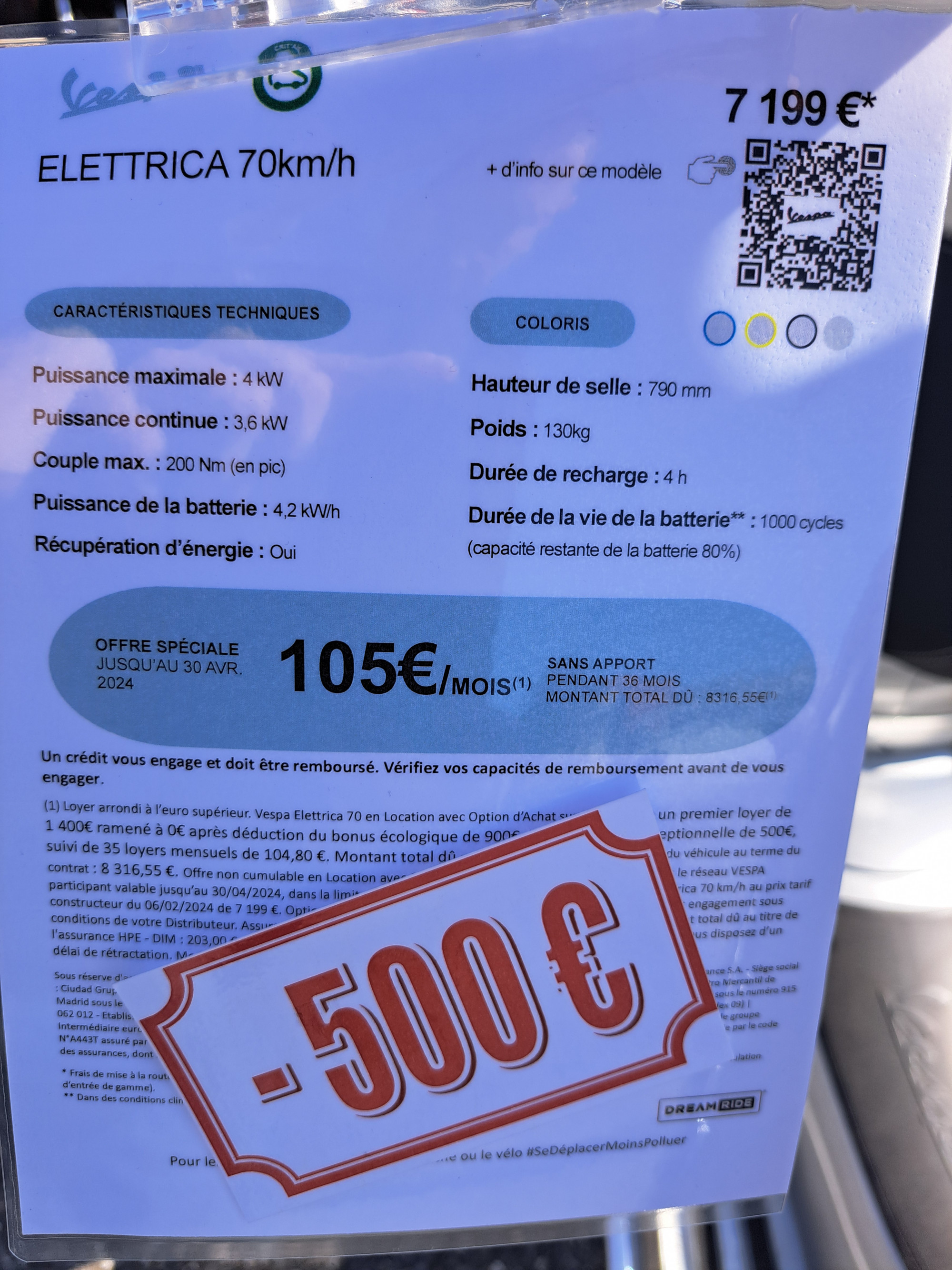 autonomie : 70km - temps de charge 6 heures - puissance moteur 4kW